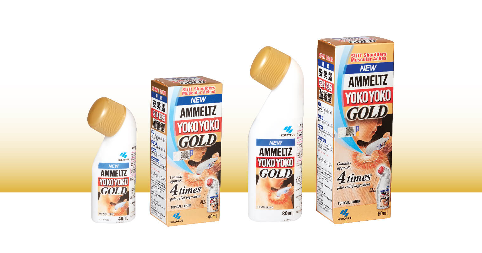 - Contains analgesic ingredient (Glycol Salicylate) approx. 4 times more* and relieves shoulder stiffness and muscular pain. *Compared to KOBAYASHI Pharmaceutical's product NEW AMMELTZ YOKO YOKO.
